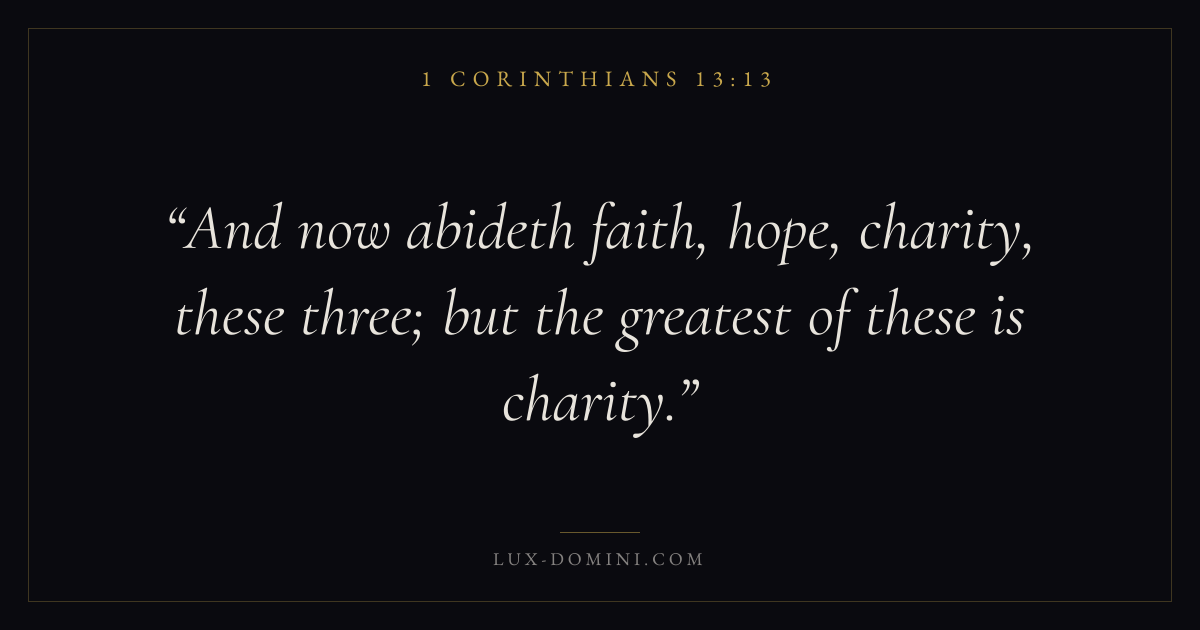 And now abideth faith, hope, charity, these three; but the greatest of these is charity.