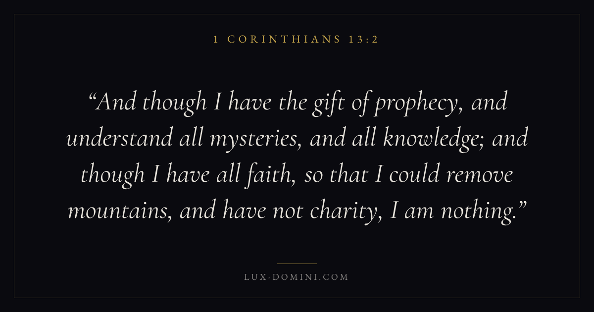 And though I have the gift of prophecy, and understand all mysteries, and all knowledge; and though I have all faith, so that I could remove mountains, and have not charity, I am nothing.