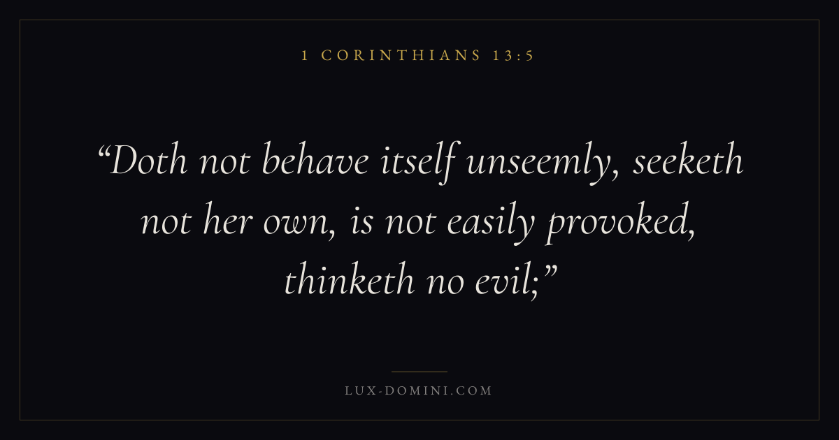 Doth not behave itself unseemly, seeketh not her own, is not easily provoked, thinketh no evil;