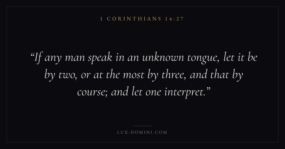 If any man speak in an unknown tongue, let it be by two, or at the most by three, and that by course; and let one interpret.