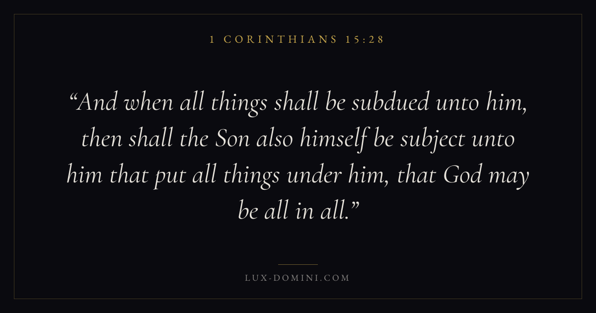 And when all things shall be subdued unto him, then shall the Son also himself be subject unto him that put all things under him, that God may be all in all.