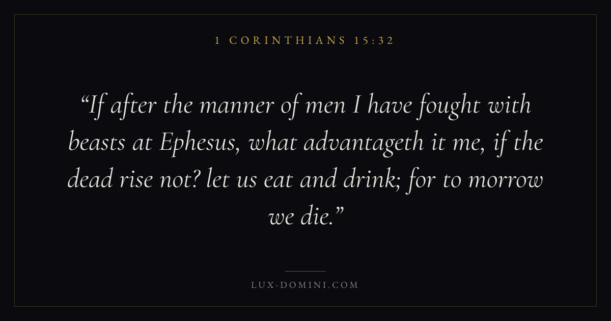 If after the manner of men I have fought with beasts at Ephesus, what advantageth it me, if the dead rise not? let us eat and drink; for to morrow we die.
