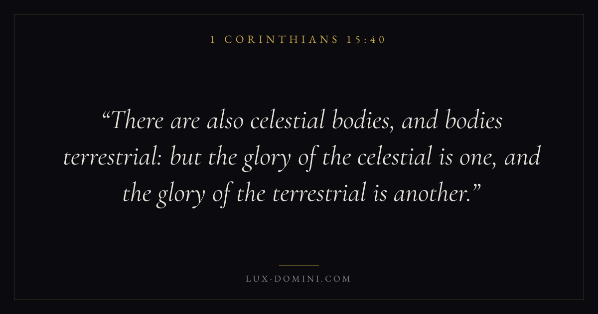 There are also celestial bodies, and bodies terrestrial: but the glory of the celestial is one, and the glory of the terrestrial is another.