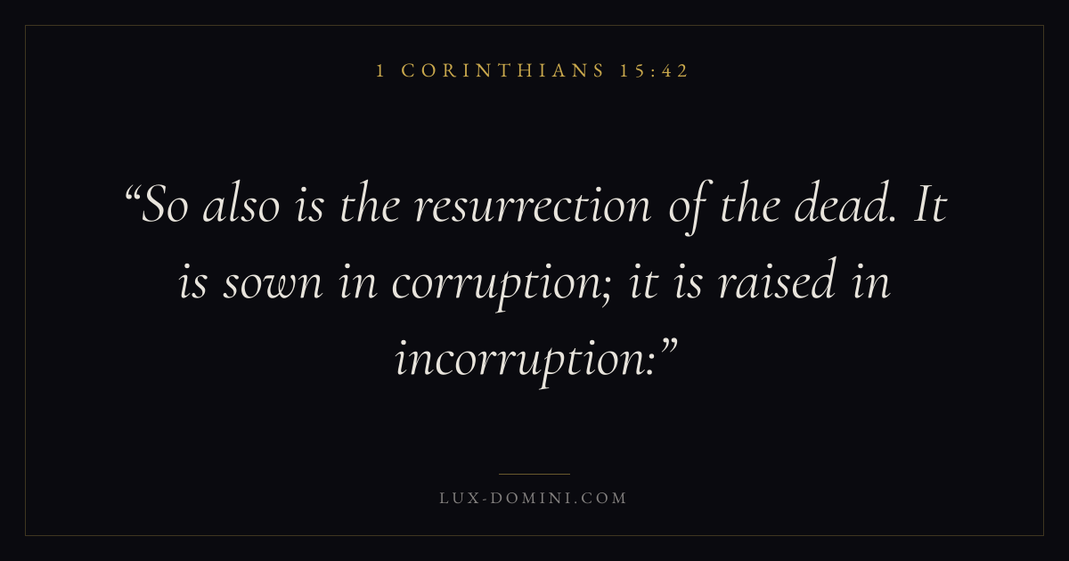 So also is the resurrection of the dead. It is sown in corruption; it is raised in incorruption: