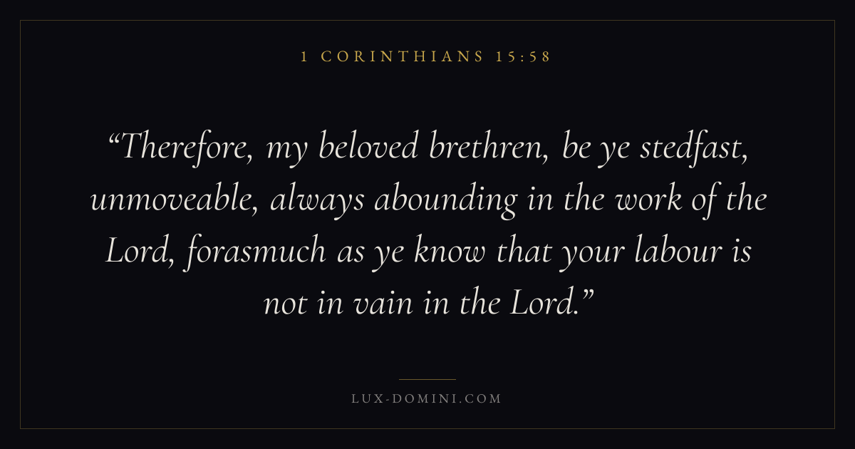 Therefore, my beloved brethren, be ye stedfast, unmoveable, always abounding in the work of the Lord, forasmuch as ye know that your labour is not in vain in the Lord.
