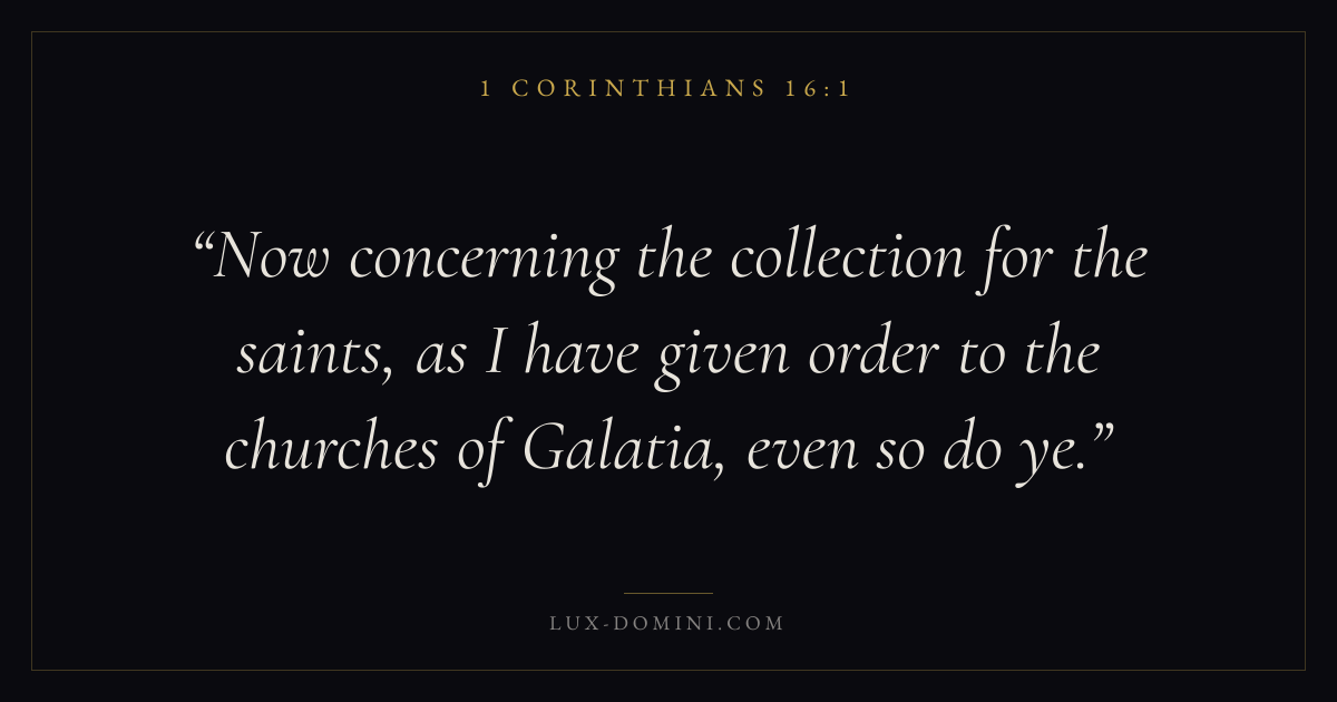 Now concerning the collection for the saints, as I have given order to the churches of Galatia, even so do ye.