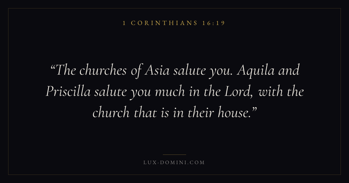 The churches of Asia salute you. Aquila and Priscilla salute you much in the Lord, with the church that is in their house.