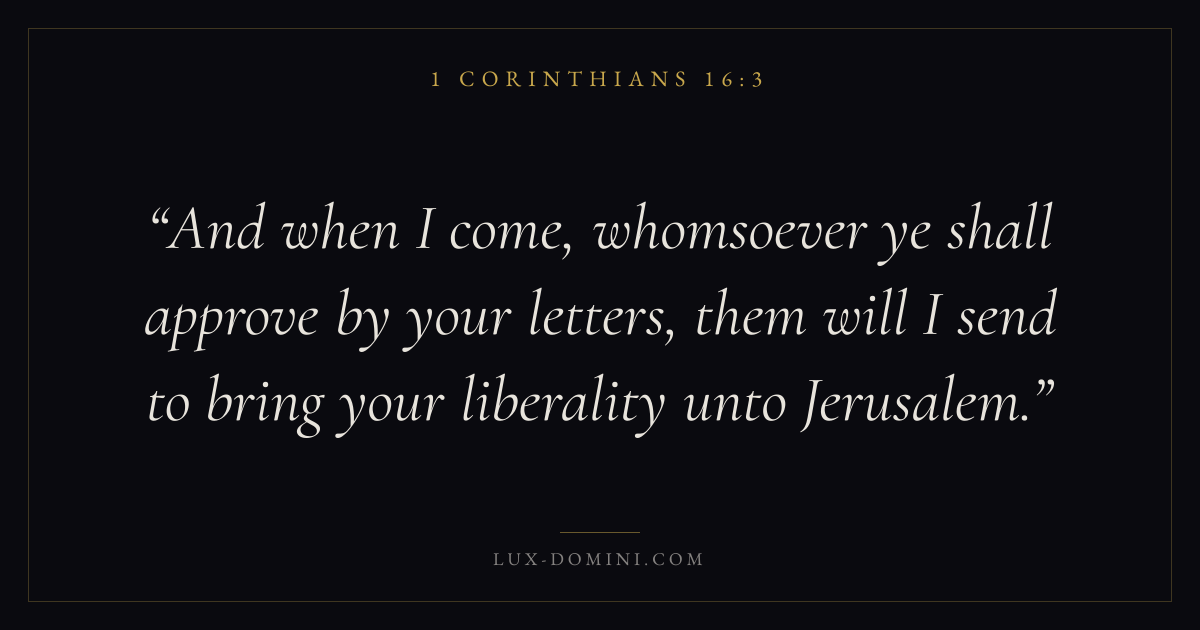 And when I come, whomsoever ye shall approve by your letters, them will I send to bring your liberality unto Jerusalem.