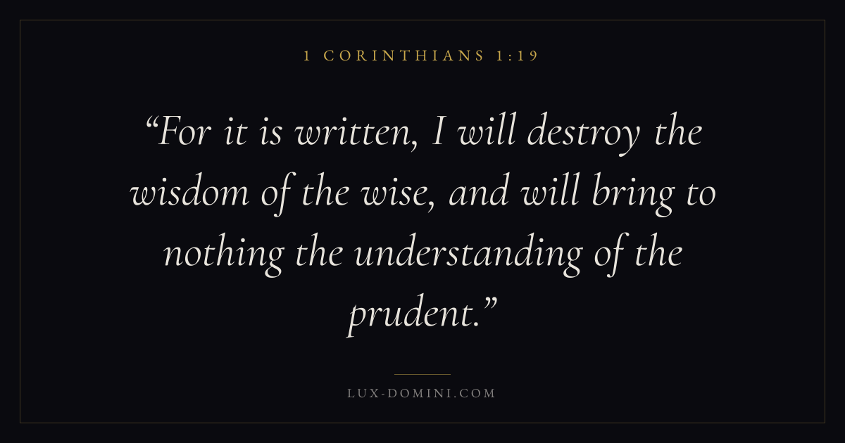 For it is written, I will destroy the wisdom of the wise, and will bring to nothing the understanding of the prudent.