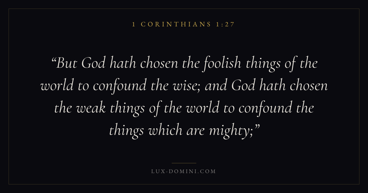 But God hath chosen the foolish things of the world to confound the wise; and God hath chosen the weak things of the world to confound the things which are mighty;