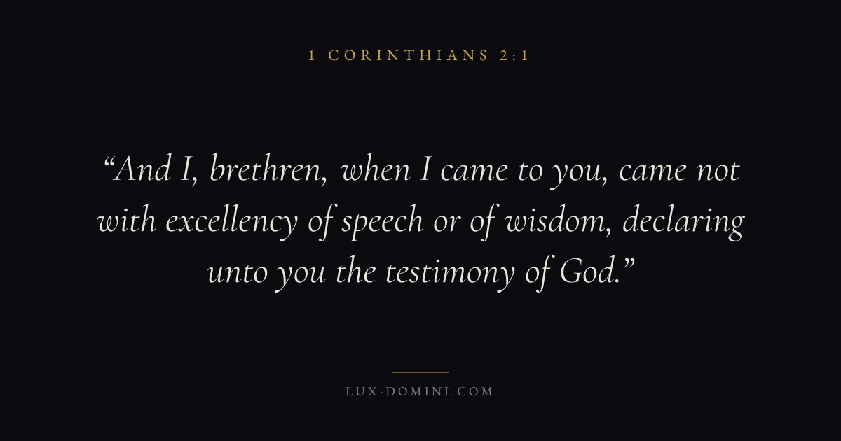 And I, brethren, when I came to you, came not with excellency of speech or of wisdom, declaring unto you the testimony of God.