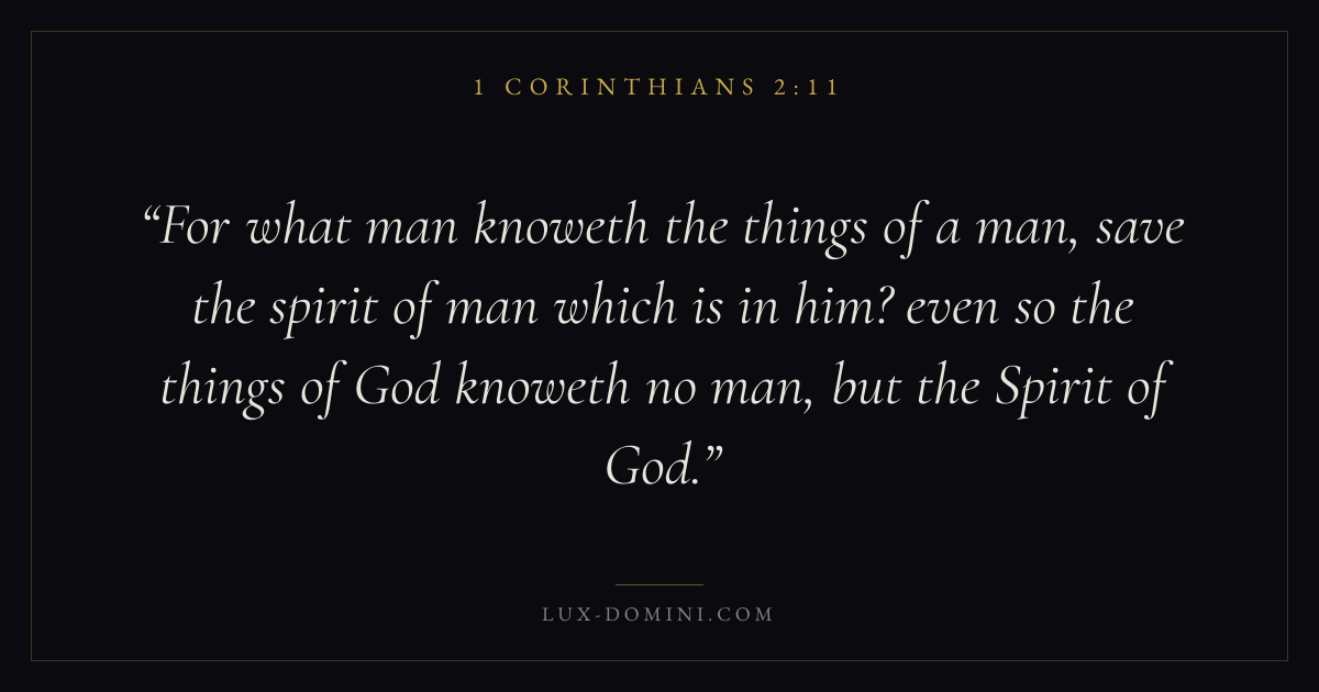 For what man knoweth the things of a man, save the spirit of man which is in him? even so the things of God knoweth no man, but the Spirit of God.