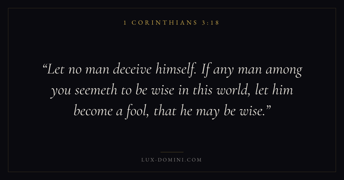 Let no man deceive himself. If any man among you seemeth to be wise in this world, let him become a fool, that he may be wise.