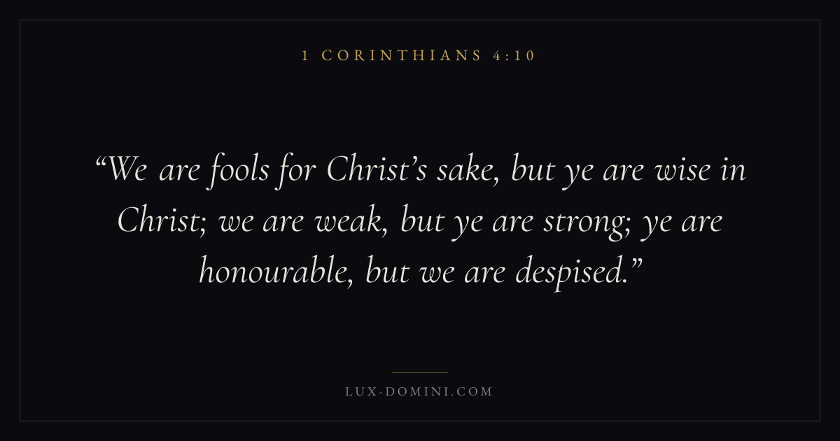 We are fools for Christ’s sake, but ye are wise in Christ; we are weak, but ye are strong; ye are honourable, but we are despised.