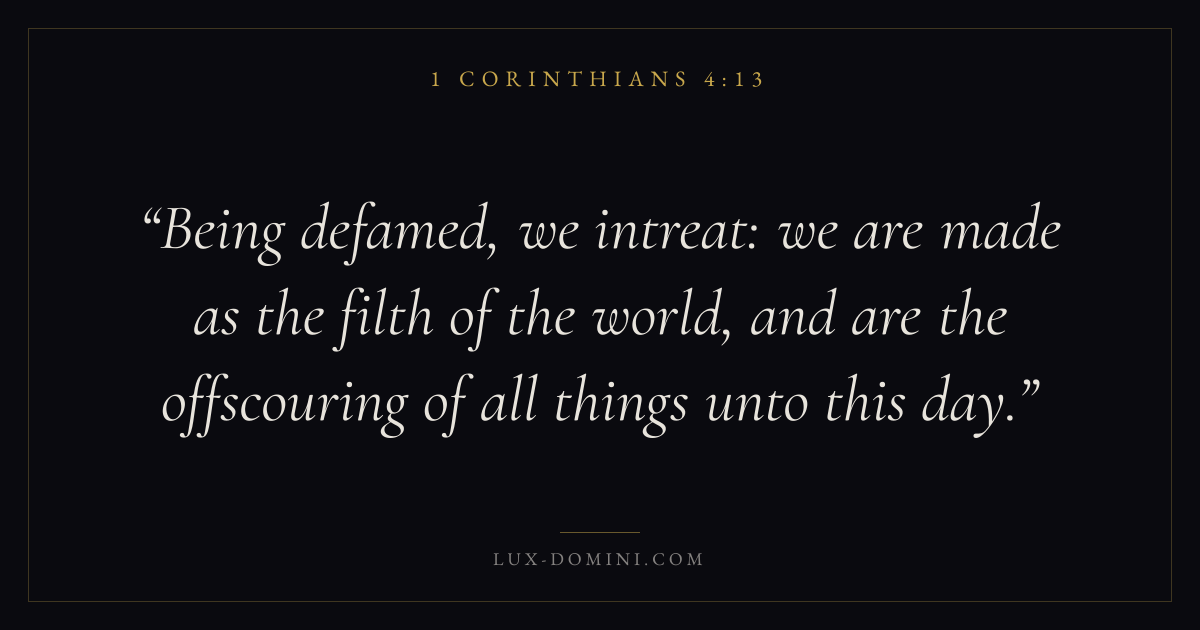 Being defamed, we intreat: we are made as the filth of the world, and are the offscouring of all things unto this day.