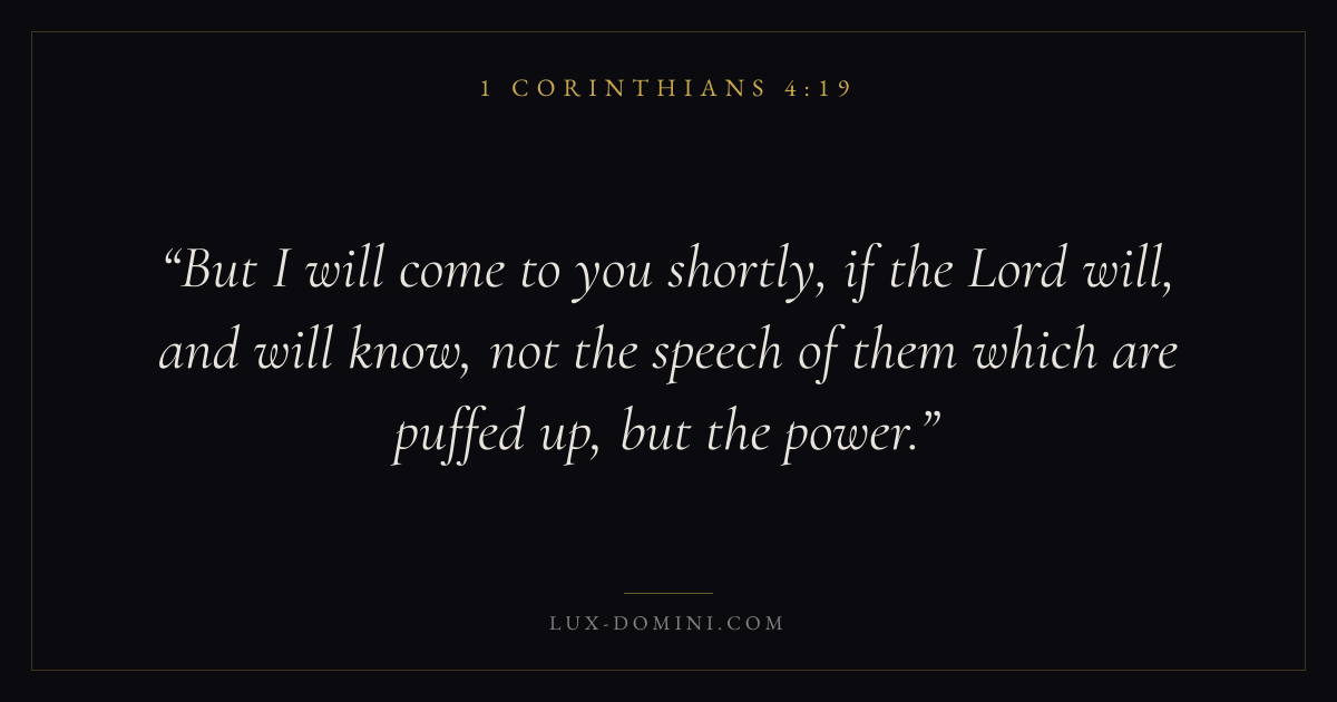 But I will come to you shortly, if the Lord will, and will know, not the speech of them which are puffed up, but the power.
