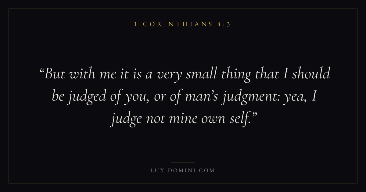 But with me it is a very small thing that I should be judged of you, or of man’s judgment: yea, I judge not mine own self.