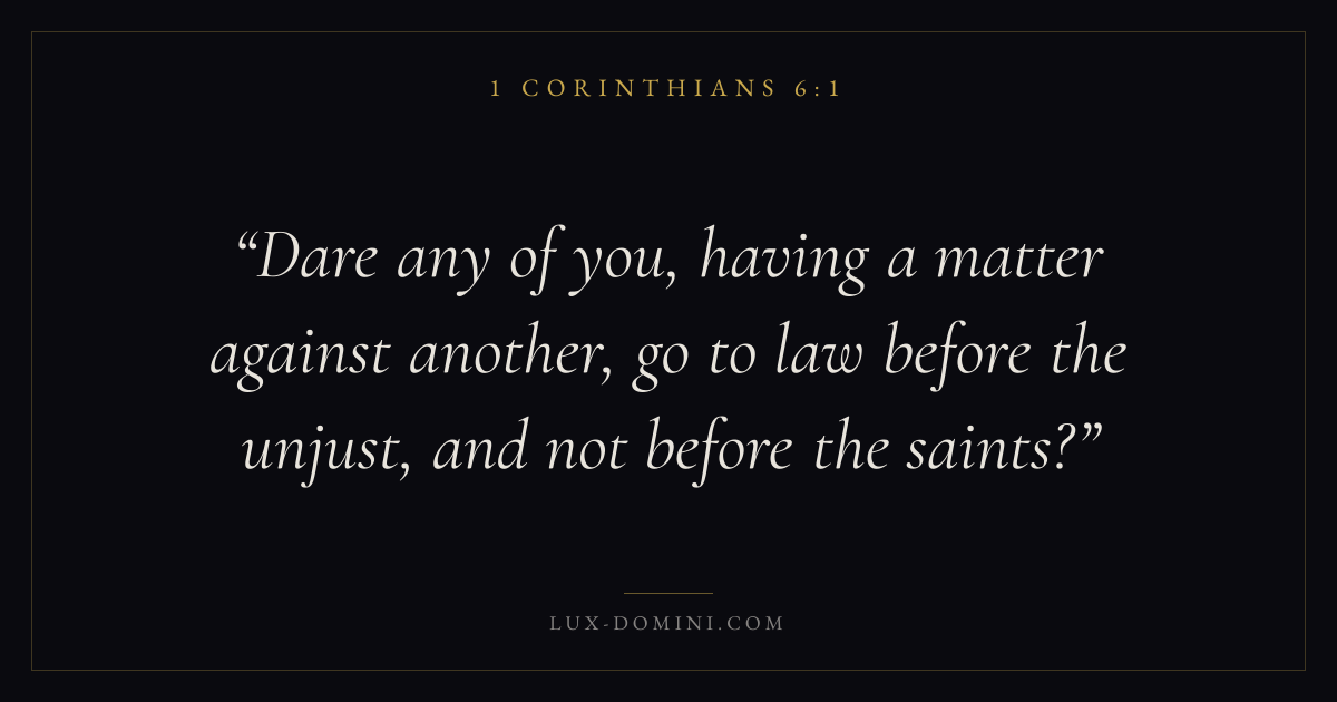 Dare any of you, having a matter against another, go to law before the unjust, and not before the saints?
