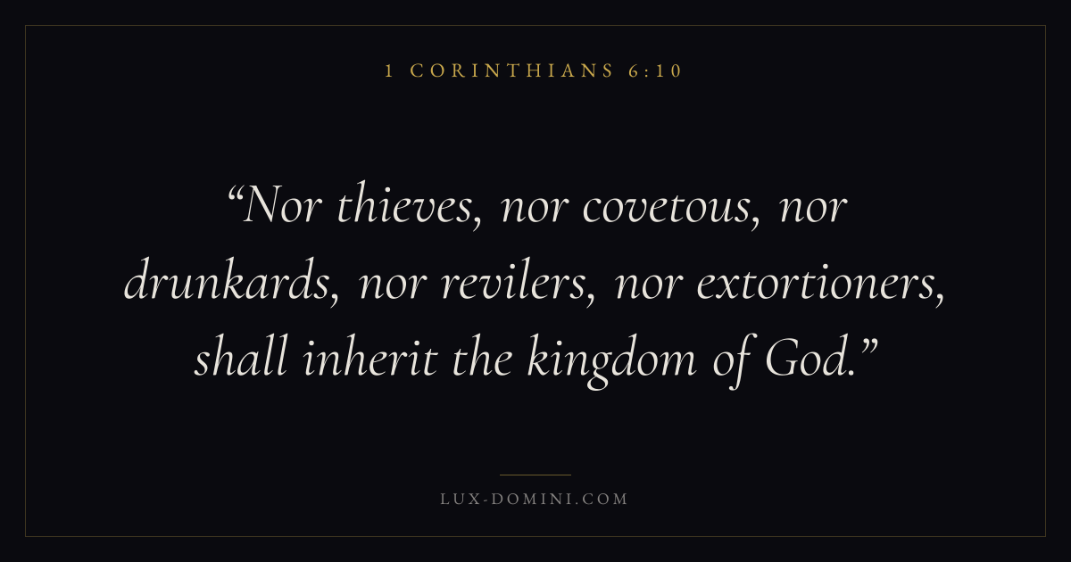 Nor thieves, nor covetous, nor drunkards, nor revilers, nor extortioners, shall inherit the kingdom of God.