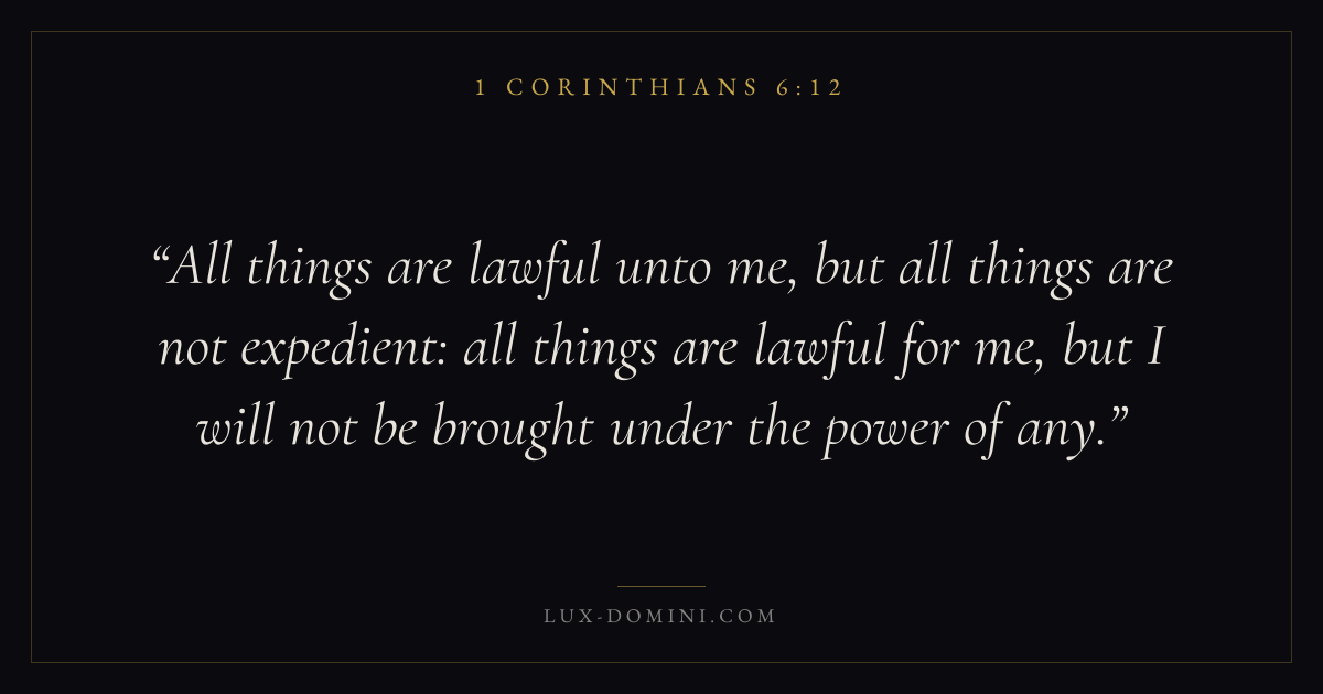 All things are lawful unto me, but all things are not expedient: all things are lawful for me, but I will not be brought under the power of any.