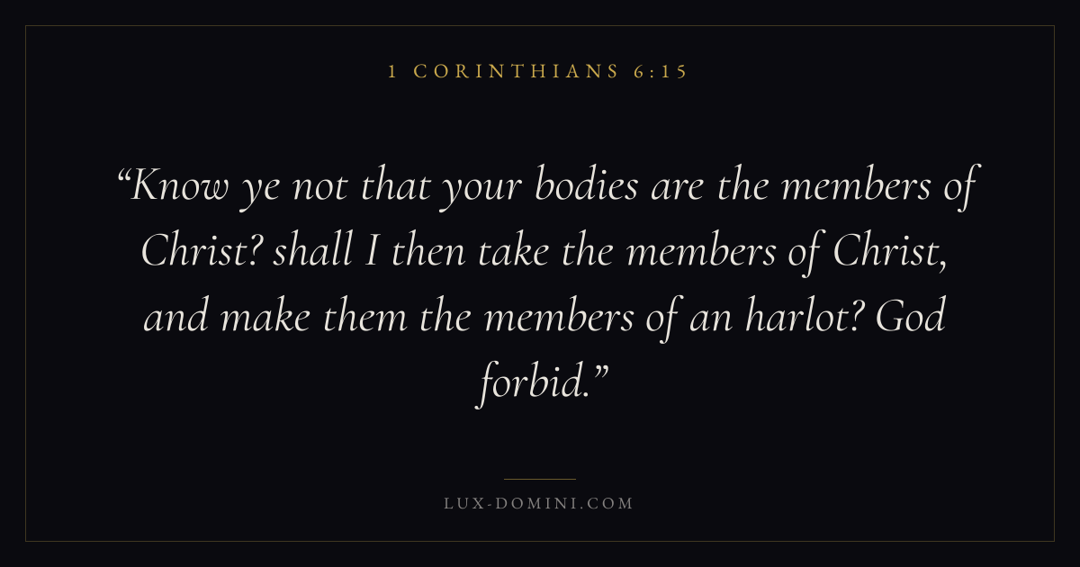 Know ye not that your bodies are the members of Christ? shall I then take the members of Christ, and make them the members of an harlot? God forbid.