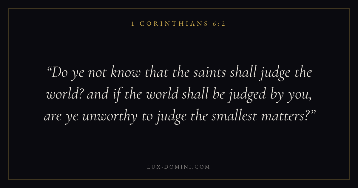 Do ye not know that the saints shall judge the world? and if the world shall be judged by you, are ye unworthy to judge the smallest matters?