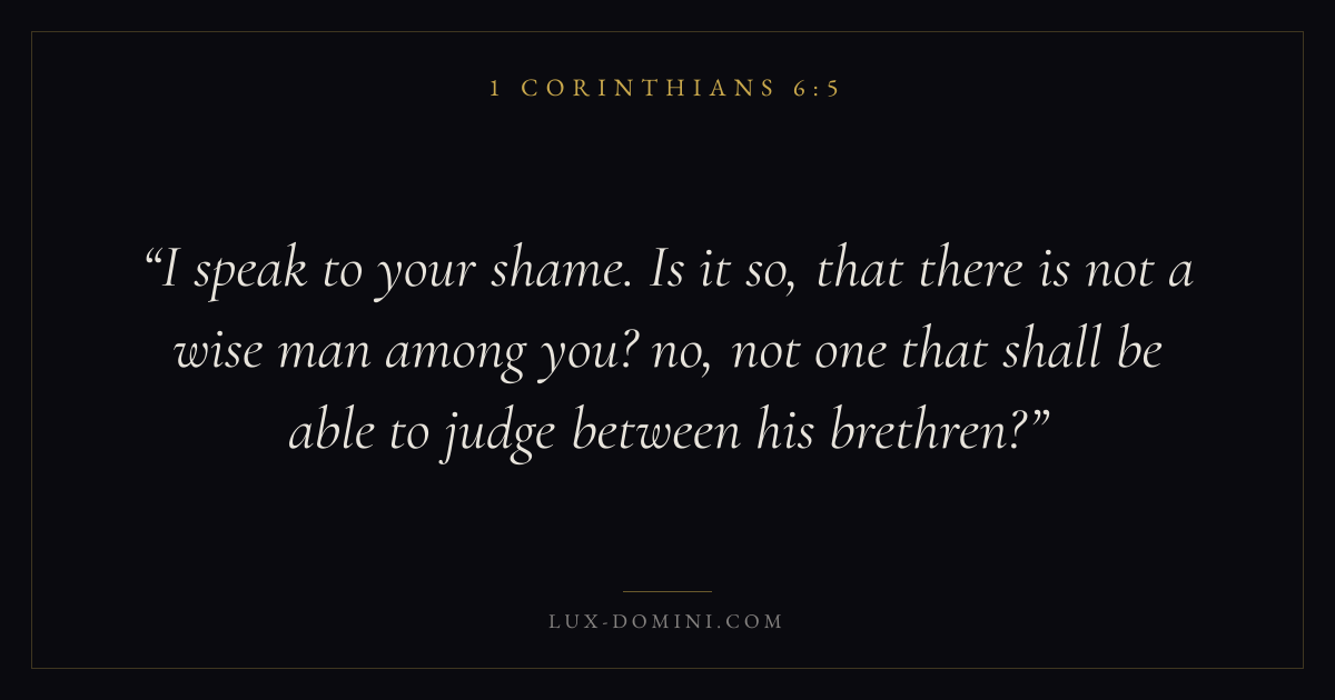 I speak to your shame. Is it so, that there is not a wise man among you? no, not one that shall be able to judge between his brethren?