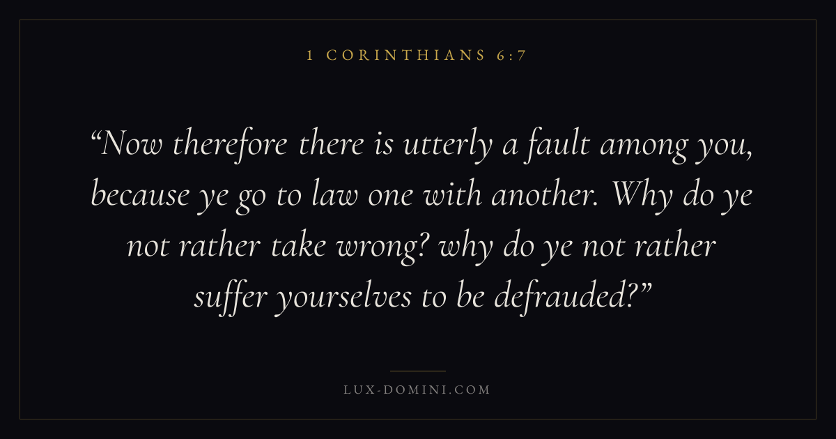 Now therefore there is utterly a fault among you, because ye go to law one with another. Why do ye not rather take wrong? why do ye not rather suffer yourselves to be defrauded?