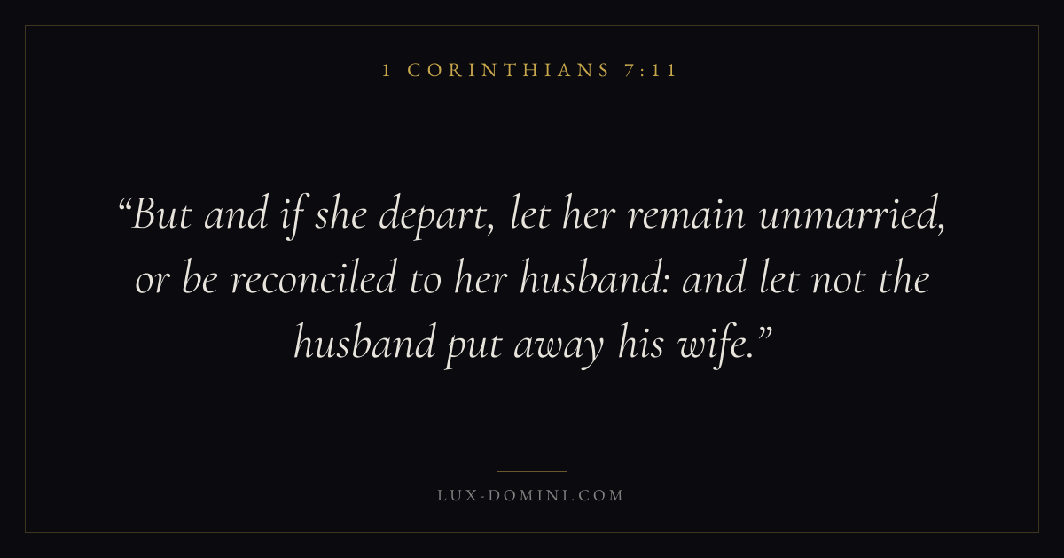 But and if she depart, let her remain unmarried, or be reconciled to her husband: and let not the husband put away his wife.