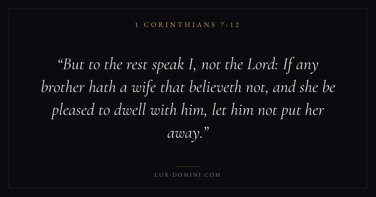 But to the rest speak I, not the Lord: If any brother hath a wife that believeth not, and she be pleased to dwell with him, let him not put her away.