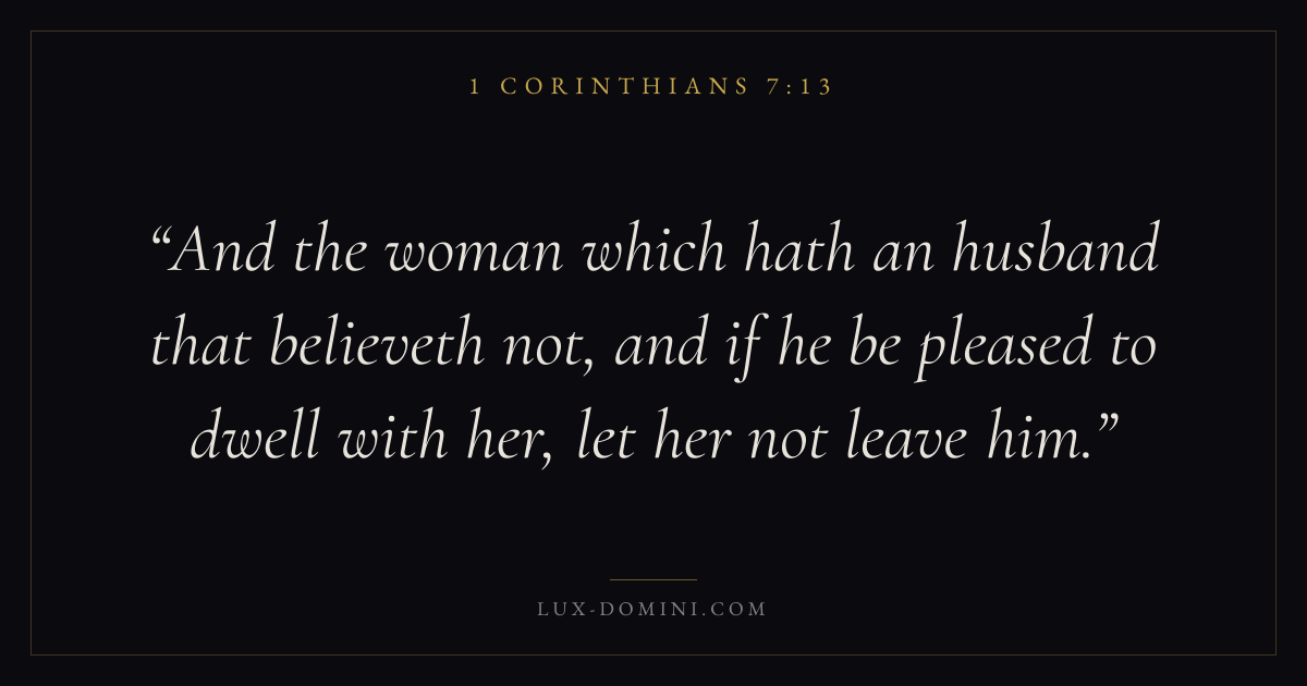 And the woman which hath an husband that believeth not, and if he be pleased to dwell with her, let her not leave him.