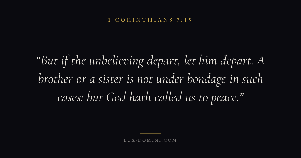 But if the unbelieving depart, let him depart. A brother or a sister is not under bondage in such cases: but God hath called us to peace.