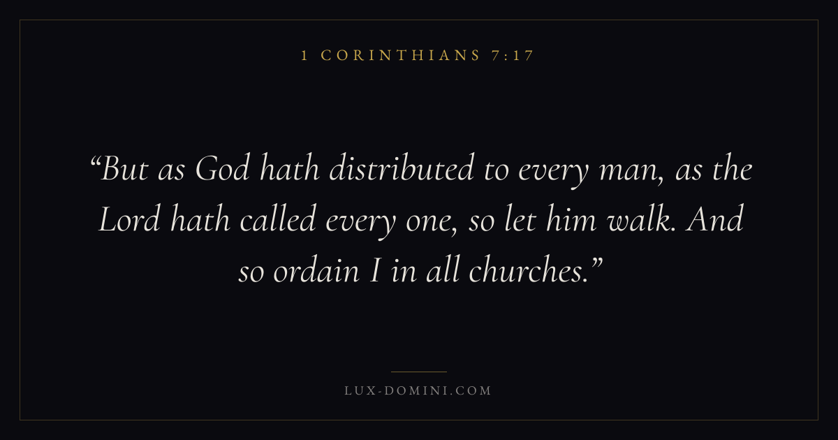 But as God hath distributed to every man, as the Lord hath called every one, so let him walk. And so ordain I in all churches.