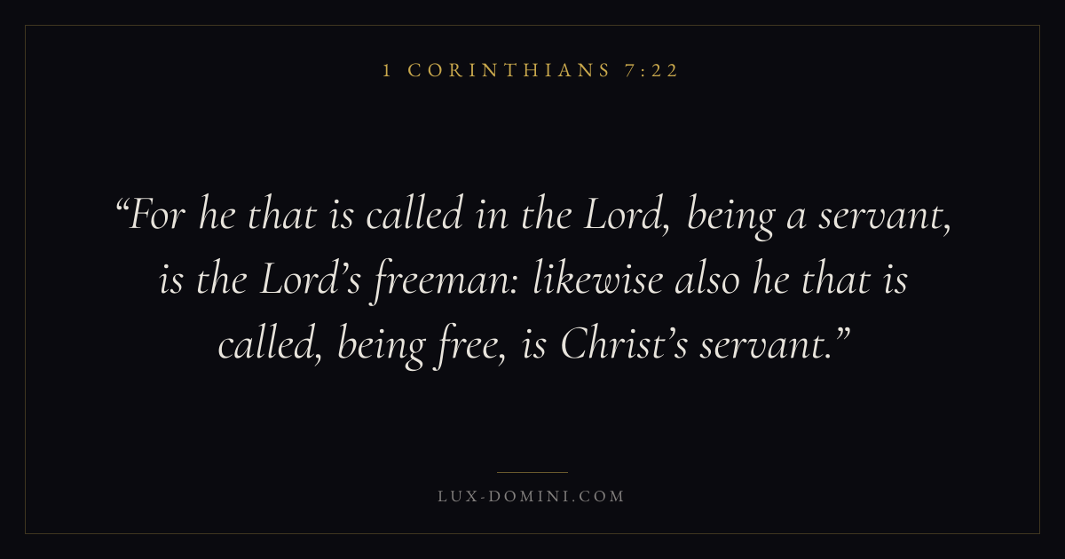 For he that is called in the Lord, being a servant, is the Lord’s freeman: likewise also he that is called, being free, is Christ’s servant.