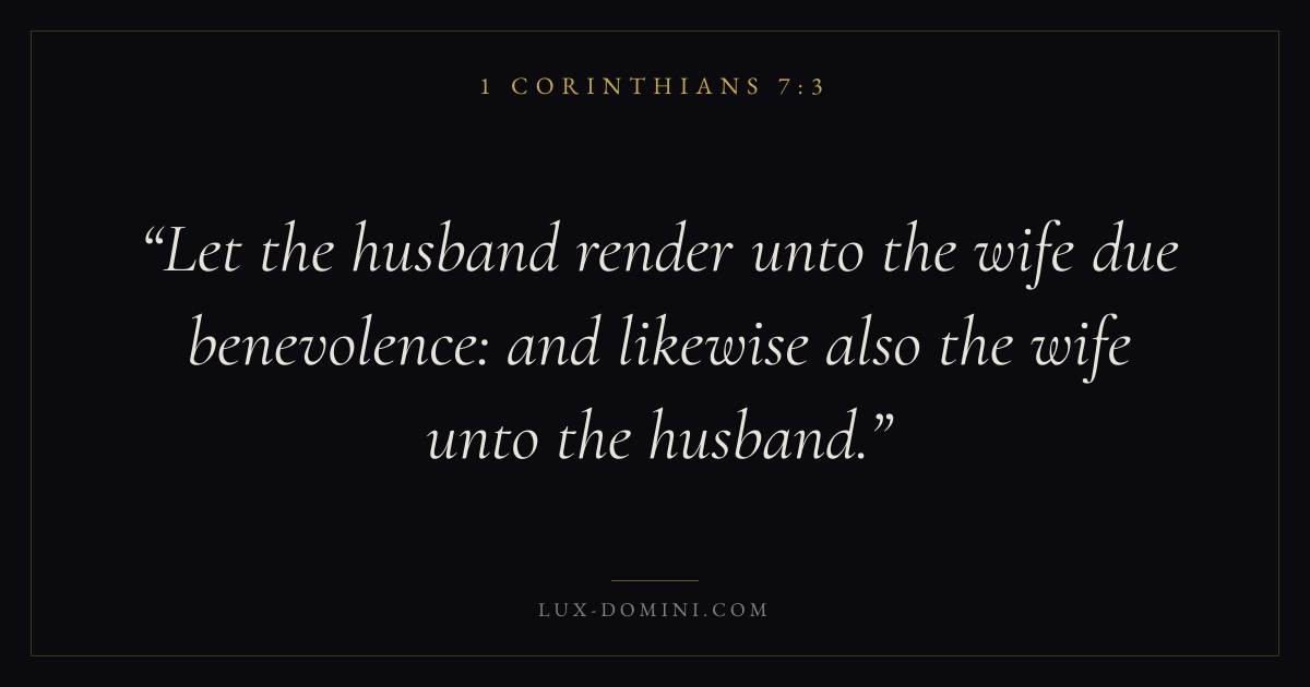 Let the husband render unto the wife due benevolence: and likewise also the wife unto the husband.
