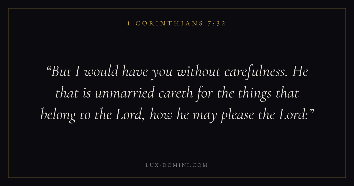 But I would have you without carefulness. He that is unmarried careth for the things that belong to the Lord, how he may please the Lord:
