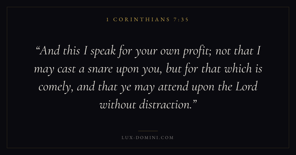 And this I speak for your own profit; not that I may cast a snare upon you, but for that which is comely, and that ye may attend upon the Lord without distraction.