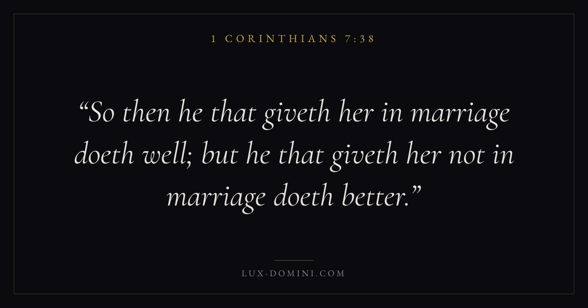 So then he that giveth her in marriage doeth well; but he that giveth her not in marriage doeth better.