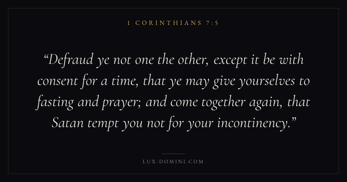 Defraud ye not one the other, except it be with consent for a time, that ye may give yourselves to fasting and prayer; and come together again, that Satan tempt you not for your incontinency.