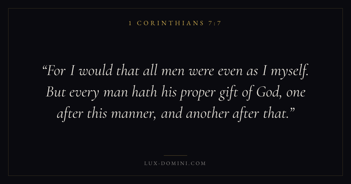For I would that all men were even as I myself. But every man hath his proper gift of God, one after this manner, and another after that.