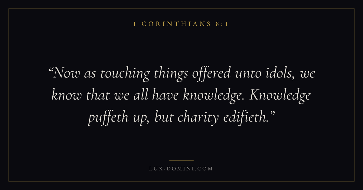 Now as touching things offered unto idols, we know that we all have knowledge. Knowledge puffeth up, but charity edifieth.