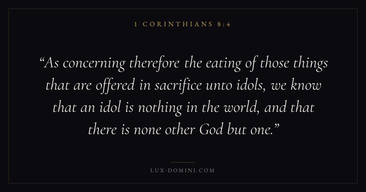 As concerning therefore the eating of those things that are offered in sacrifice unto idols, we know that an idol is nothing in the world, and that there is none other God but one.