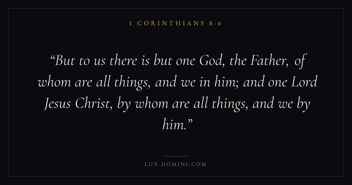 But to us there is but one God, the Father, of whom are all things, and we in him; and one Lord Jesus Christ, by whom are all things, and we by him.