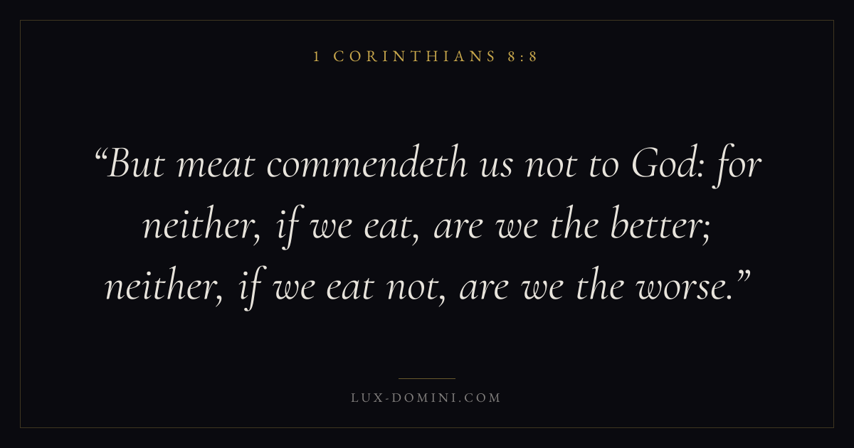 But meat commendeth us not to God: for neither, if we eat, are we the better; neither, if we eat not, are we the worse.