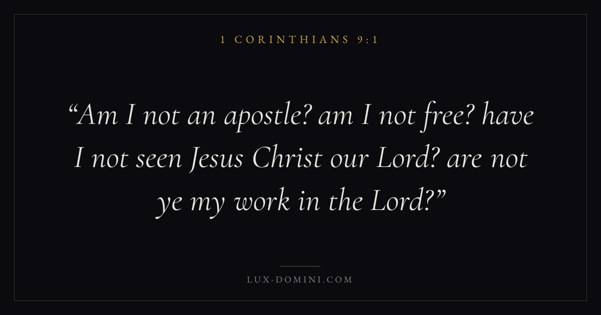 Am I not an apostle? am I not free? have I not seen Jesus Christ our Lord? are not ye my work in the Lord?