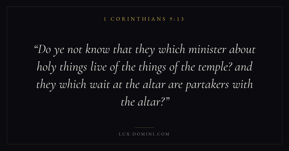Do ye not know that they which minister about holy things live of the things of the temple? and they which wait at the altar are partakers with the altar?