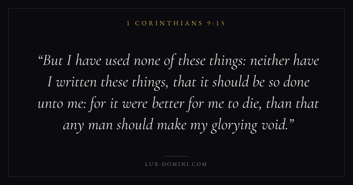 But I have used none of these things: neither have I written these things, that it should be so done unto me: for it were better for me to die, than that any man should make my glorying void.