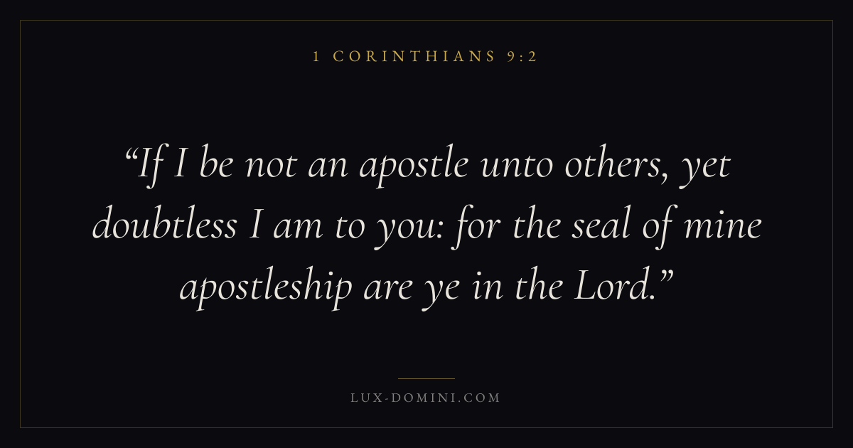 If I be not an apostle unto others, yet doubtless I am to you: for the seal of mine apostleship are ye in the Lord.