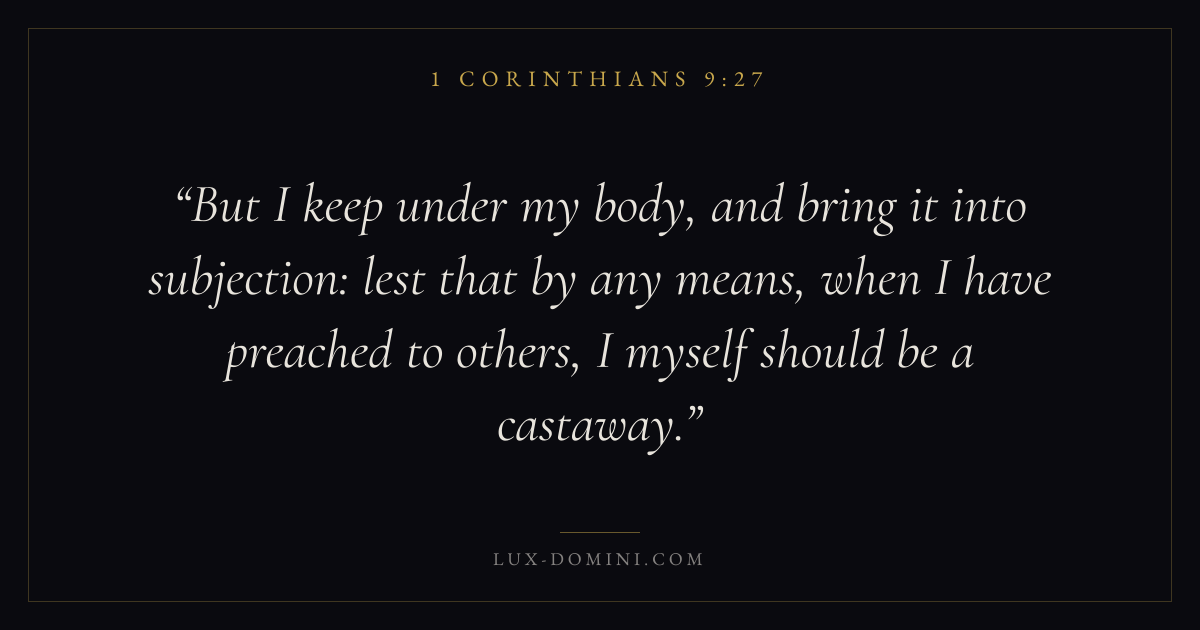 But I keep under my body, and bring it into subjection: lest that by any means, when I have preached to others, I myself should be a castaway.