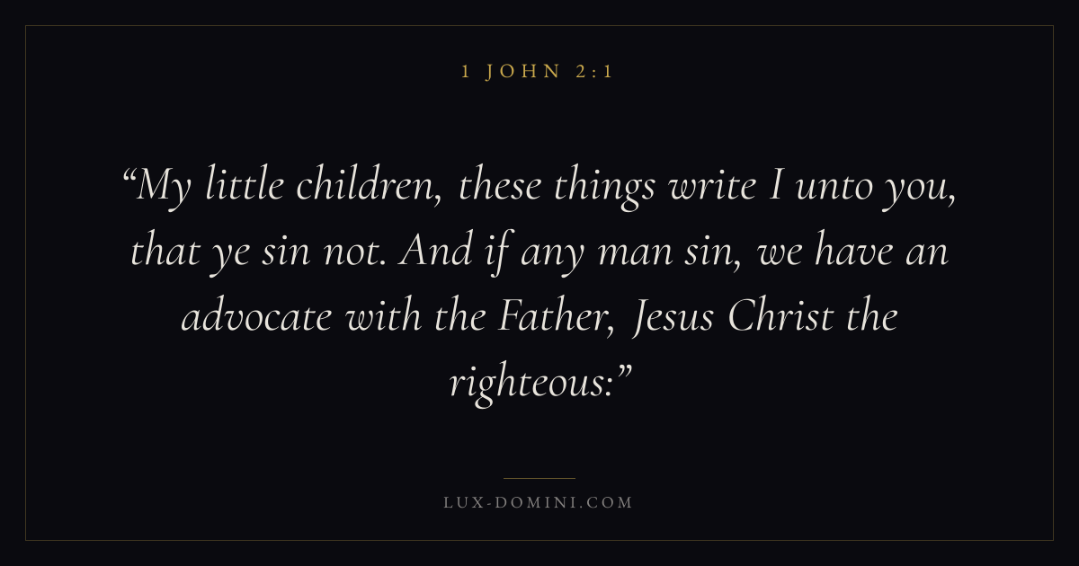 My little children, these things write I unto you, that ye sin not. And if any man sin, we have an advocate with the Father, Jesus Christ the righteous: